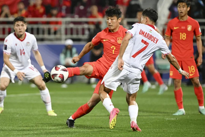 比赛开始后,塔吉克斯坦队居然很快占据了场上优势,将中国队逼在半场形成围攻之势。他们的传接配合更有效,半场12脚射门数远超中国队的3脚。颜骏凌成为国足最抢眼的球员,如果不是他两次快速反应的精彩扑救,中国队的大门恐怕早就被对手打穿了。