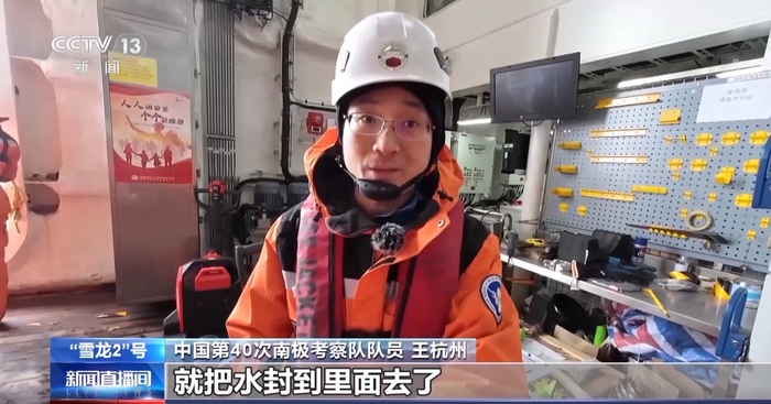 中国第40次南极考察队队员 王杭州:1500米采、1000米采、500米采,包括叶绿色最大层,科学家事先告诉操作人员,操作人员会在这个层位来触发,触发的时候采水瓶就可以关闭,就把水封到里面去了。