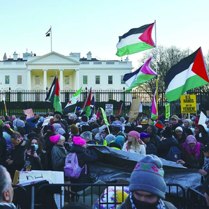 13日,美国华盛顿特区,数千名抗议者举行集会,呼吁加沙地带立即停火。(IC photo)
