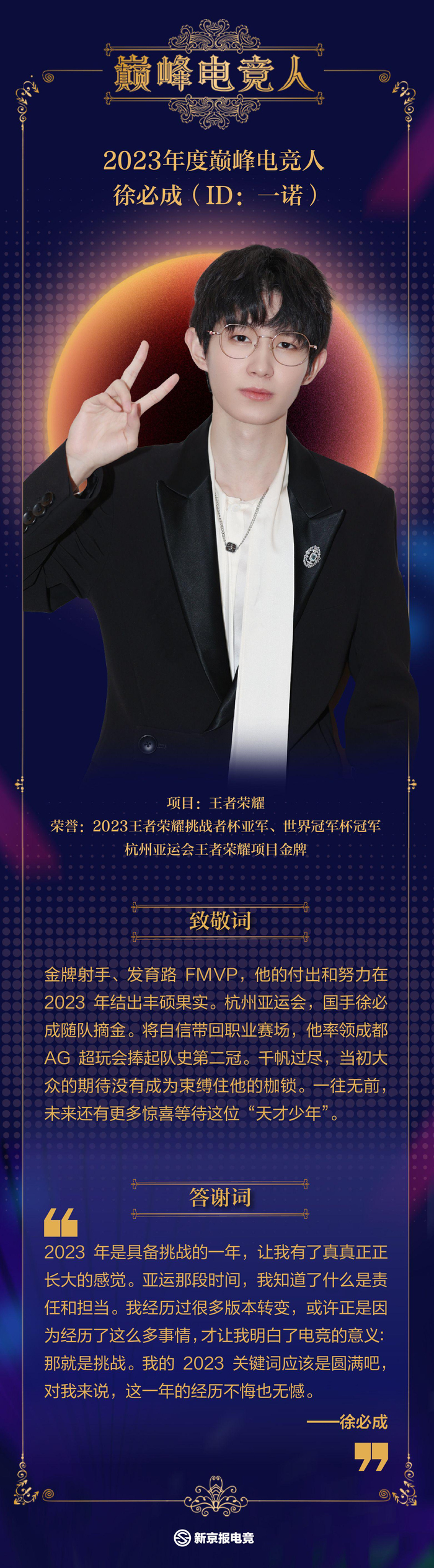 年度巅峰电竞人徐必成|新京报巅峰电竞人2023