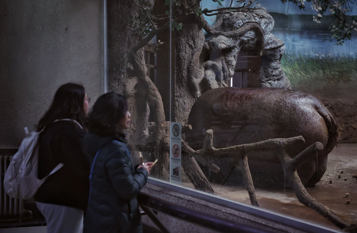 1997年,6岁的河马“犇犇”从日本来到北京动物园,此后的27年里,它和伴侣“津津”生下了15只小河马。为了照顾好年纪渐长的两口子,饲养员苏铮格外关注河马池中的水温。“它们70%以上的时间生活在水中,冬天我们会把水温调高到24摄氏度。水温太热也不行,它们总爱泡在水里,会影响取食。”