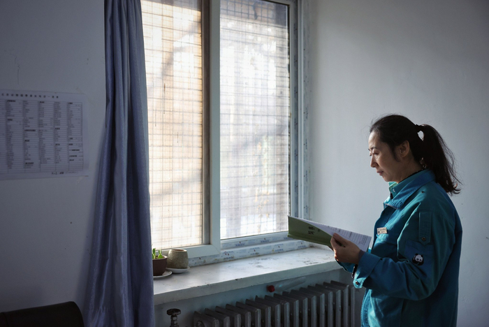 1月16日,北京动物园,饲养员王海春在查看“饲养档案”。