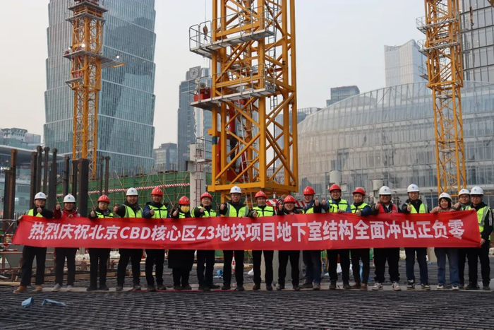 2024年1月18日,CBD核心区Z3地块项目地下结构封顶,标志着该项目冲出“正负零”,全面进入地上结构实施阶段。