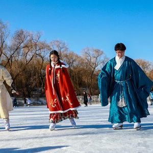1月7日,北京大学未名湖冰场向市民开放,预约游览校园成功的游客即可享受冰雪乐趣。