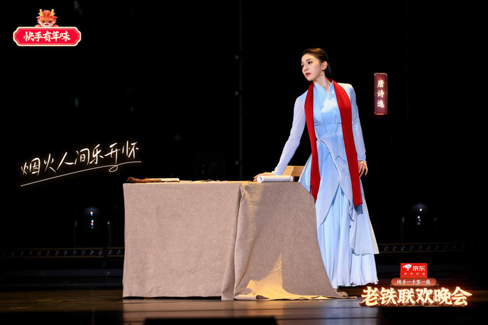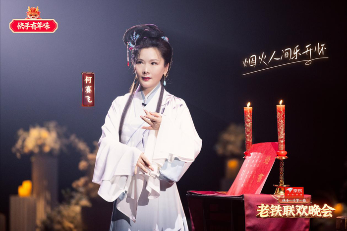 另一个让人感动的舞台源自龚琳娜与另外几位快手音乐创作者。近几年致力于推广国风音乐、方言音乐的龚琳娜,参与策划了多场方言活动,同样怀着保护方言文化的快手一拍即合,龚琳娜不光倾情演唱此次铁晚主题曲《铁铁来贴贴》,还与快手创作者@浮萍浮萍草、@润夏也叫嘟嘟、@玩音乐的大猫Mi、@郑向东合唱了《我的家乡最显眼》。“我觉得他们每一个人都很多元”,龚琳娜告诉记者,她主要唱副歌、旋律部分,其他几位创作者则用家乡话来介绍自己的家乡,“创作者每一个人的长项,他们的发言,他们家乡的美好都写进了歌词里。”