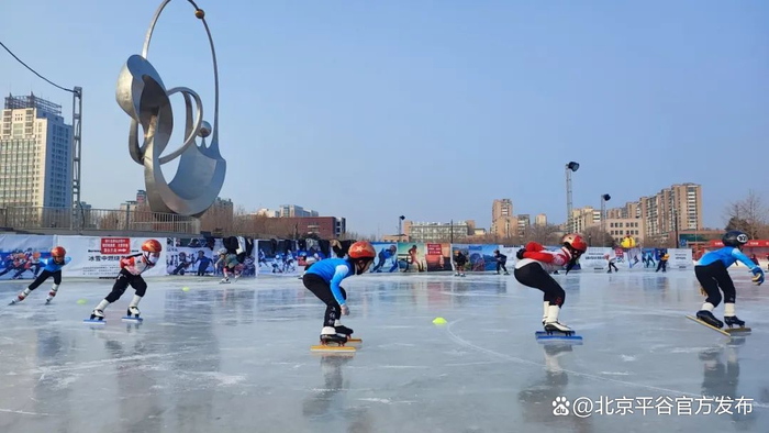2月6日,平谷区短道速滑队训练展示在世纪广场滑冰场开展,共有30名队员参与训练。