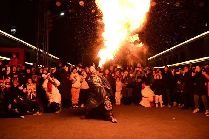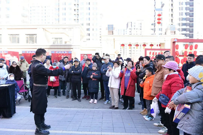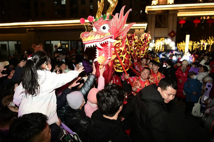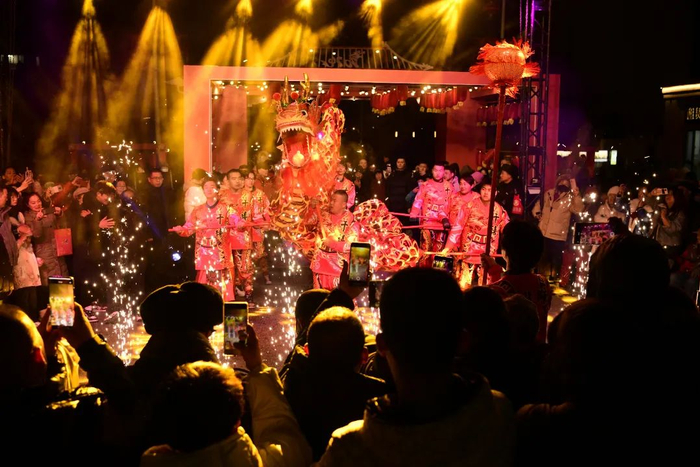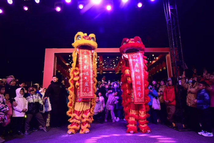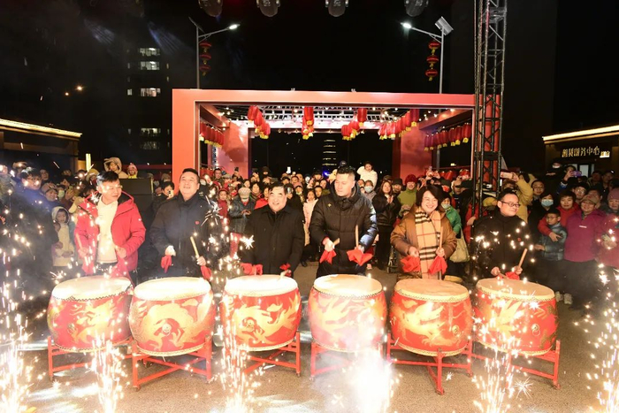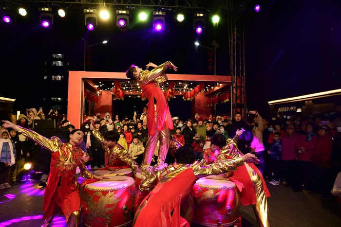 晚上八点半,吃完年夜饭的村民百姓都纷纷下楼,人群已络绎不绝,近千余位父老乡亲相聚于春节大集的现场,民俗贺岁·开市仪式正式拉开了序幕。国粹迎春大舞台浓情上演,舞龙舞狮、变脸杂耍、古韵国风舞蹈、中国龙鼓、西河大鼓等各色京韵民俗文化表演轮番上阵,让观演的群众应接不暇,纷纷拿出手机相机打卡拍照,在大饱眼福的同时,可以领略到春节传统中国年的独特文化魅力,为榆树庄地区百姓呈上了一道新春文化视听盛宴。