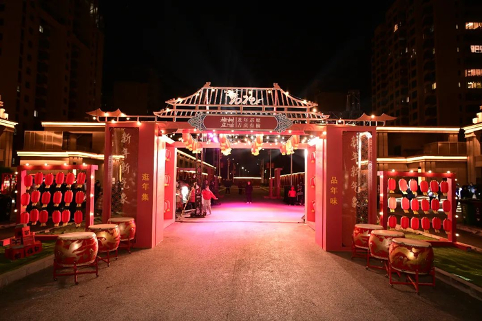 甲辰龙年,看榆树长青。红红火火闹新春,欢欢喜喜过大年。2月9日年三十,榆树庄村回迁房小区“榆树庄园”外张灯结彩,人头攒动,锣鼓喧天,好不热闹!大气磅礴的祥龙造型市集门头和漫天悬挂的吉庆灯笼,30余个大集摊位和穿插布置的精美灯架造型,在巍然而立的榆树庄标志性文化建筑“文峰塔”的映衬下,家的味道更加浓厚,年的味道更加生动,将甲辰龙年喜庆火热的气氛拉满!榆树庄村百姓相聚于此,看一场红红火火的开年演出、赶一场热热闹闹的春节大集、寻一种儿时记忆的烟火年味。