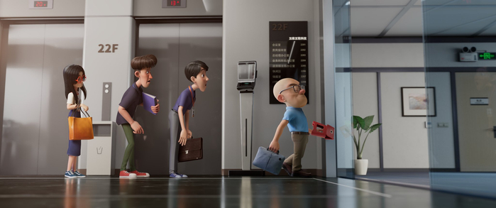 在《熊出没·逆转时空》中,光头强成为一名都市上班族。