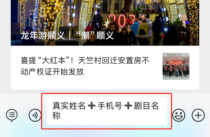 自微信发布起,您发送“真实姓名+手机号+剧目名称”至北京顺义微信公众号,即可参与抢票,抢票时间截至2月16日12时,逾期无效。每个微信号仅限一次机会,每人可抢2张。抢票结果将在微信平台回复告知。