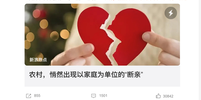 “农村悄然出现以家庭为单位的断亲”话题登上微博热搜。