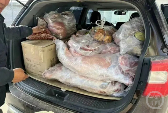 一位北京网友晒出的返程后备箱让人特别震惊。这名网友老家是内蒙的,后备箱里面最引人注意的是新鲜的羊肉,用保鲜膜包裹着,有两整只。父母说想着他们一年难得回来一次,就杀了两只羊,让他们全都拿回去,足足近300斤,还有其他当地的特产也有不少,恨不得把整个家都让搬走。网友很犯愁,不知道这样整只羊拿回去,该怎样分割呢。