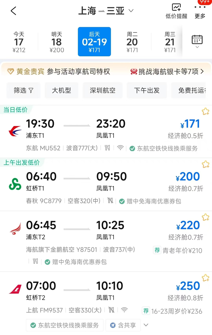 对于航司来说,此时增加海南航班,也面临进岛客流减少风险。记者查询平台发现,目前上海到三亚的票价跌已破200元,对于错峰游海南来说是不错的选择。