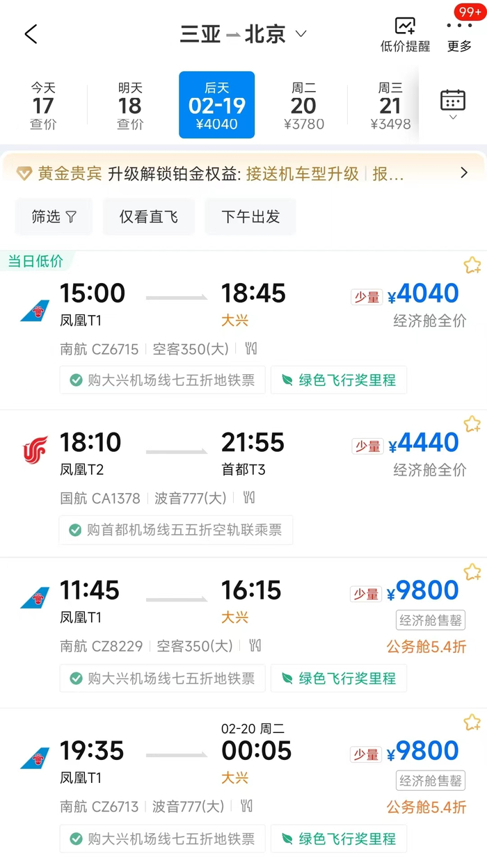 民航局方面也透露,在关注到网上经济舱机票紧缺、公务舱机票价高的声音后,2月15日,结合三亚机场阶段性完成了8个停机位施工的工作进展,坚持安全第一,紧急组织指导中南地区管理局评估机场地面和空管保障能力,恢复时刻供给。共安排国航、南航和海航三家航司每天平均新增13班次进出三亚,同时安排东航临时新增每天10班次进出博鳌,进一步满足旅客春运返程需要。