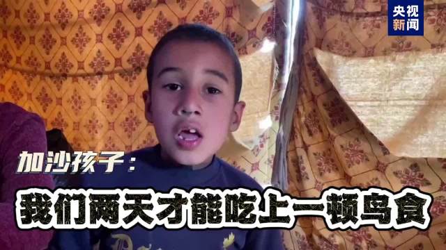 加沙地带、特别是加沙城所在的北部地区人道主义危机极其严峻,物资严重匮乏。家住加沙城的谢哈达三兄弟近日冒险逃到加沙地带中部代尔拜拉赫的姑姑家,才吃上一餐“人吃的食物”。三兄弟说,他们在加沙城时,每两天才能吃上一顿鸟食,鸟食很苦,为了不饿死才勉强下咽。他们的妈妈和其他多位家人都已死于以军袭击。