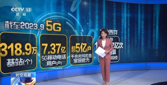十年来,我国网络基础设施实现跨越式提升,宽带网络平均下载速率提高近40倍,移动通信网络由3G演进到5G,并建成了全球最大规模5G网络。截至2023年9月,我国累计建成5G基站318.9万个,5G移动电话用户达7.37亿户;千兆光网已具备覆盖超过5亿户家庭的能力;“东数西算”工程从系统布局进入全面建设阶段,算力总规模达每秒1.97万亿亿次浮点运算。