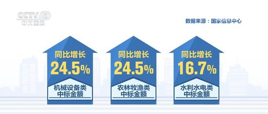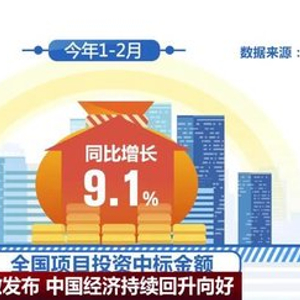 在投资方面,今年1、2月份,与工程项目投资立项、建设相关的指标较去年同期增长明显。国家信息中心监测数据显示,今年1—2月全国项目投资中标金额同比增长9.1%。其中,机械设备类、农林牧渔类、水利水电类等中标金额分别同比增长24.5%、24.5%、16.7%。可以看出,在多项支持政策的共同推动下,我国制造业重点行业投资持续向好,民生补短板投资力度不断加大。