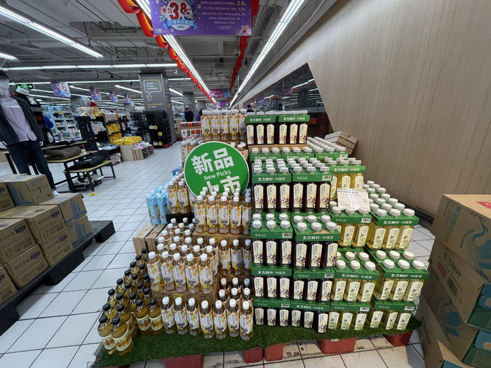浦东新区一家私营便利店门口的三个冰柜都印着农夫山泉的大logo,其中一个冰柜中摆放了1/3的农夫山泉旗下产品,包括农夫果园果汁和东方树叶。 在门店内部的货架上,摆放着售卖娃哈哈的AD钙奶。“前段时间宗庆后后刚去世的时候,娃哈哈AD钙奶卖得非常好。最近农夫山泉的销量有微微下降,但整体来说影响不是特别大,并不是所有消费者都很在意这些。”老板表示。