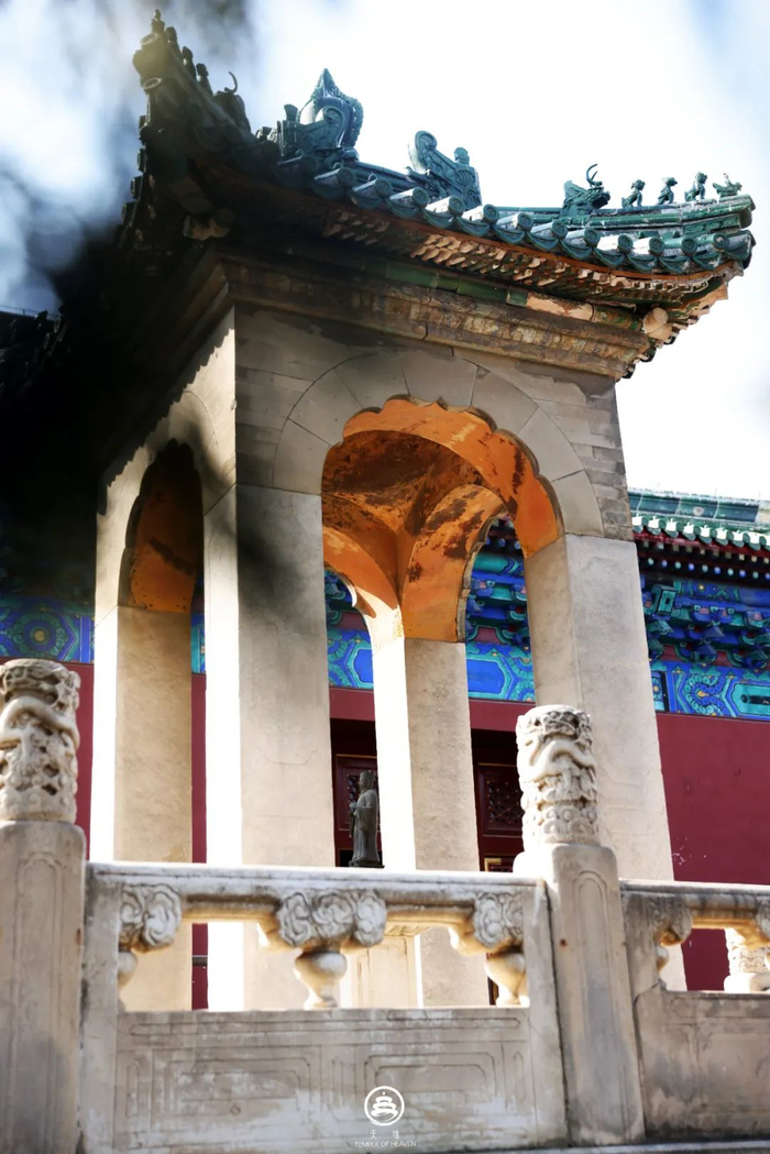 天坛中的两座祭坛——即祈谷坛和圜丘坛均是坐北朝南,居于主位,代表着“天”,斋宫则坐西朝东,面向祭坛而建,如天之子侍立“天”侧,以显恭敬。