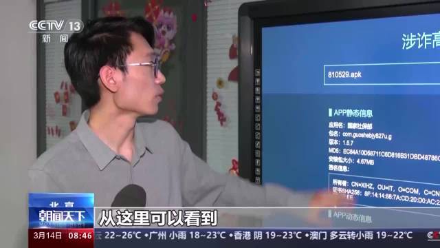 工业和信息化部反诈工作专班技术专家 马勇:目前我们发现涉诈的App主要集中在金融投资、伪造国家机关以及刷单返利等几个主要的方面,这是近期主要的特点。这些涉诈App给社会带来不良影响,对我们国家相关机关的公信力造成损害。