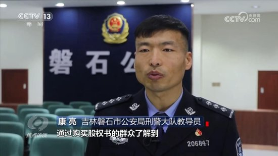吉林磐石市公安局刑警大队教导员康亮介绍,通过购买股权书的群众了解到,这是一个投资29.9元就能获得110万元回报的项目。