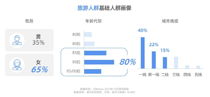 从年龄结构看,下沉市场客群也越来越年轻化。根据第一财经《2023年小城住宿行业趋势洞察报告》,下沉市场商旅人群中男性占比达60%,整体客群以中青年为主;下沉市场休闲旅游人群中女性占比达65%,整体客源更趋年轻化,85后、90后、95/00后总计占比达80%。