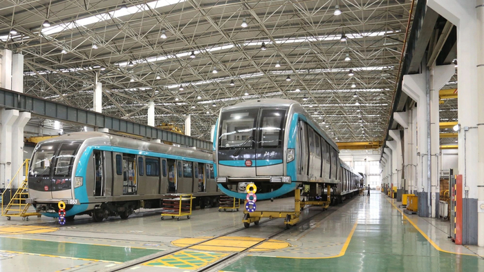 在京港地铁的车辆维修保养车间,设备设施安排井然有序,一辆地铁列车正在这里维修保养。京港地铁是北京与香港两地合作的企业,负责运营管理的5条线路每天为200多万人次乘客提供出行服务。