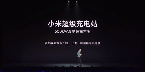 雷军介绍,小米正在筹建小米超级充电站,采用600kW液冷超充方案,首批规划城市北京、上海、杭州将逐步建设。