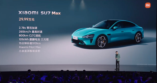 雷军宣布,小米SU7 MAX版本售价29.99万元。