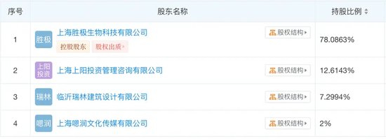 上海妆滟庭贸易有限公司其控股股东是上海胜极生物科技有限公司/图源:天眼查