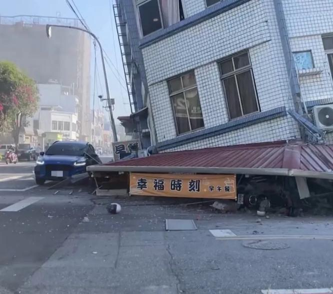 综合岛内媒体报道,花莲北滨街一栋公寓民宅大幅度倾斜,目前警消已赶到场协助疏散住户。花莲传出多民宅倒塌,北滨街“幸福时刻早午餐”的房屋倾斜,往路面上倒下去,一楼直接被压到不见(下图),路边的车辆都紧急暂停行驶。