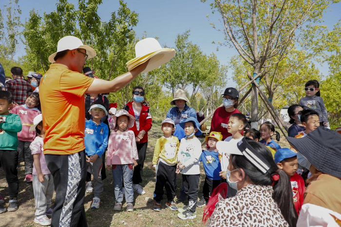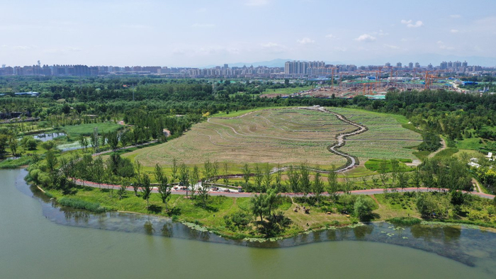 “田”是山水林田湖草沙生命共同体系统的重要组成部分,也是农耕生产对自然改造而形成的独特农业景观。温榆河公园将园区内农田进行景观化设计,打造出美丽的芸上梯田景观。这里高20余米,随季节变化呈现不同特色,春秋时节分别为油菜花和向日葵的花海赏景体验,成为游客朋友拍照游玩的热门打卡地。登上望芸台,不仅可将梯田美景尽收眼底,还可以远观山水自然和城市美景。芸上梯田底部一侧是美小豹农耕自然教育营地所在地,依托梯田开阔的生态空间与优越的地理位置,结合美小豹农耕自然教育营地优秀的师资力量与科学的课程配套,孩子们可以在此亲身体验插秧等农事活动。