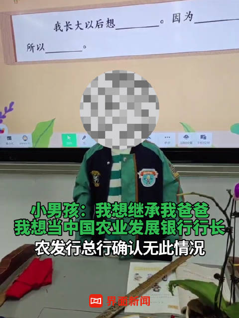 小男孩称想当行长继承家产 农发行总行:确认无此情况