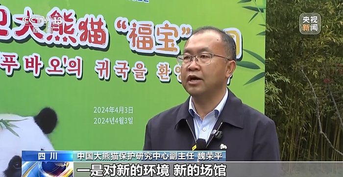 中国大熊猫保护研究中心副主任 魏荣平:一是对新的环境、新的场馆和生活条件的适应。第二个是对我们新的饲养管理团队,包括它的饲养员、其他的技术人员给它交流的适应。第三个就是对于我们在新的环境里面大熊猫的食物,包括我们的饲养方式等等各个方面的适应。