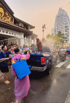 在泼水狂欢之余
