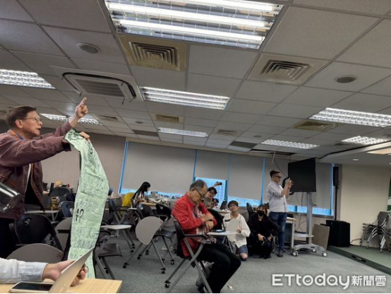 在民进党发言人吴峥回应完记者提问后,这位抗议者突然发问,先是质疑吴峥参选时,他曾向吴峥陈情,随后说着他的陈情案,从新北市中和区道路交通议题开始,到痛批行政机构人事行政总处人事长苏俊荣可以留任,“赖清德是选什么人才?”连日前公布留任的现任的劳动部门负责人许铭春、中华邮政董事长吴宏谋等一堆官员全中枪,他还更拿出事先准备好的标语。