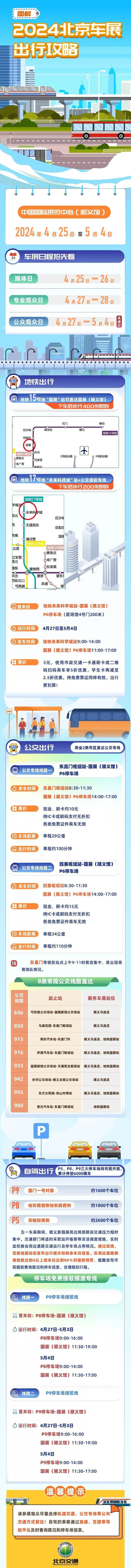 4月27日至5月4日,开通2条连接国展(顺义馆)和市区的车展专线。市民可乘坐公交前往观展。