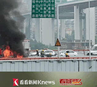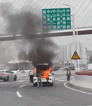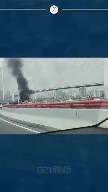 上海南浦大桥一新能源车起火,经扑救已熄灭