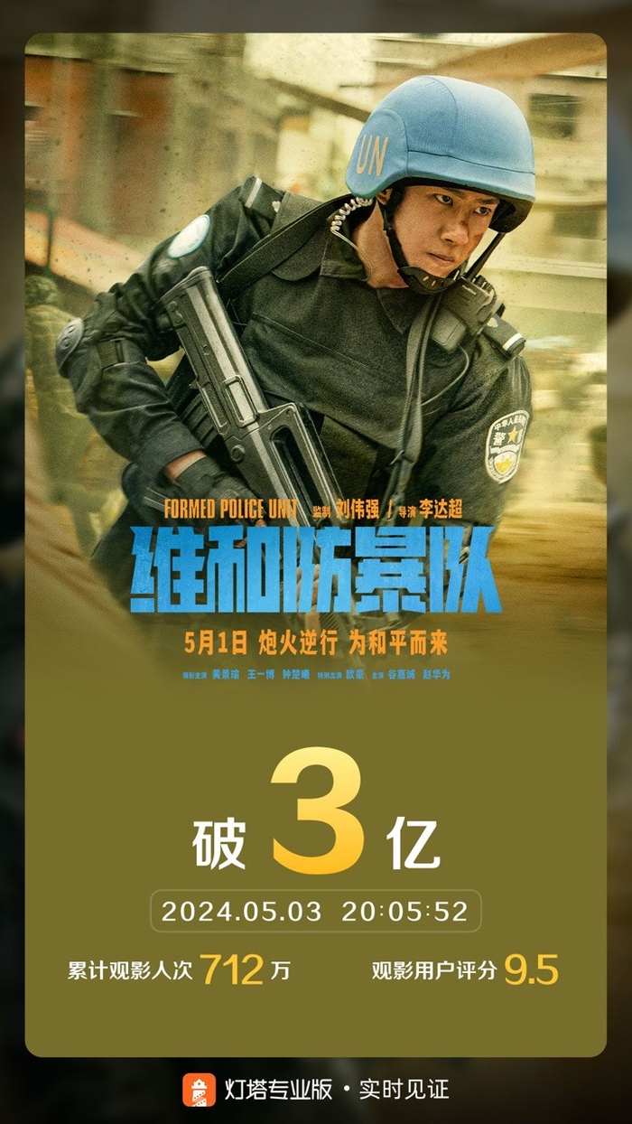 电影《维和防暴队》票房破3亿,累计观影人次已超700万