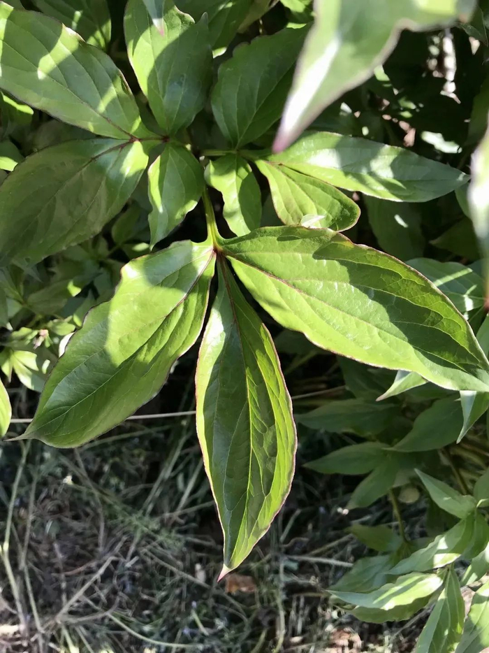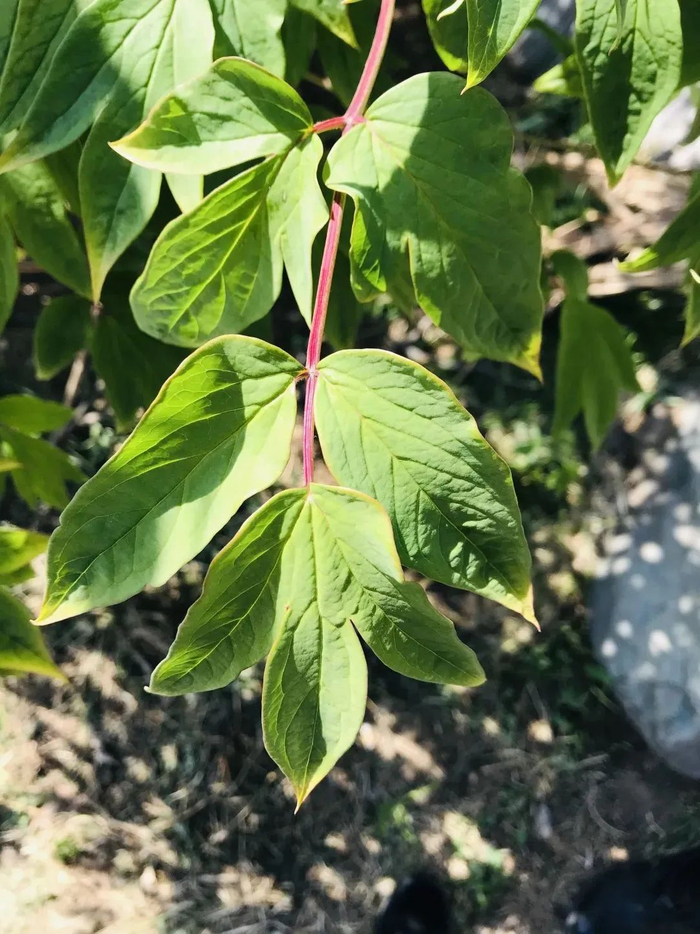 牡丹和芍药的叶子都是二回三出复叶,但牡丹的小叶前端是分叉的,一般分成三个叉,而芍药的叶子狭长,不分叉。