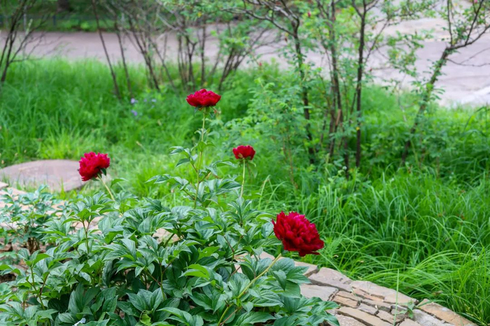 牡丹是落叶灌木,像树木一样有真正的树干树枝,虽然比较细小,但冬天只会掉叶子,枝干不会枯萎。芍药是多年生草本植物,春天像草一样直接从地里长出来,到了冬天地上部分会枯萎。
