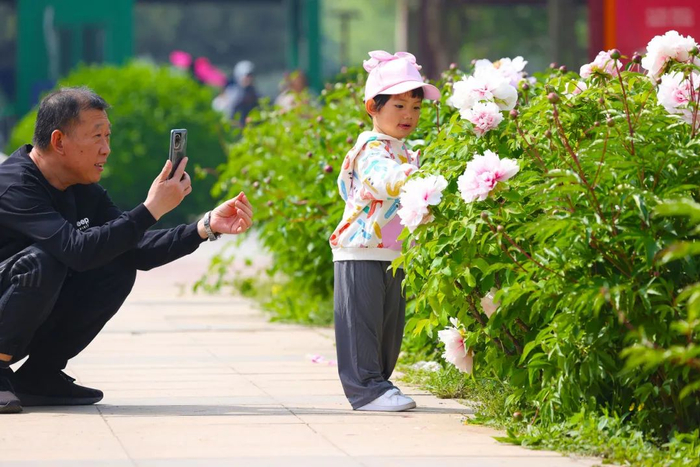 游园于此,花香扑鼻而来,沁人心脾。为了提升市民游客赏花体验,南海子公园优化了牡丹园结构,将种植区规划成花池种植和路边种植两个部分,并根据区域进行不同品种不同色系的牡丹栽种,让市民能够更好地赏花留影。记者在现场看到,很多市民自带拍照器材和装备,在花前摆好姿势,留下“人面牡丹相映红”的画面;有人在花丛旁轻声歌唱,赞美牡丹高贵典雅的品格;也有人找个安静之处,在花间写生,用纸和笔描绘牡丹冠绝群芳的姿态……