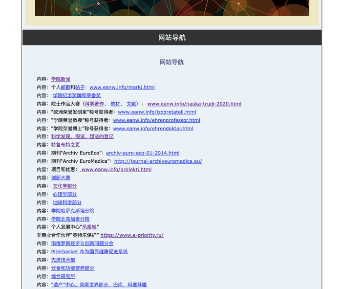 5月7日,欧洲自然科学院官网首页无“院士电子百科全书”相关信息及链接(图中中文系网页翻译后呈现)。