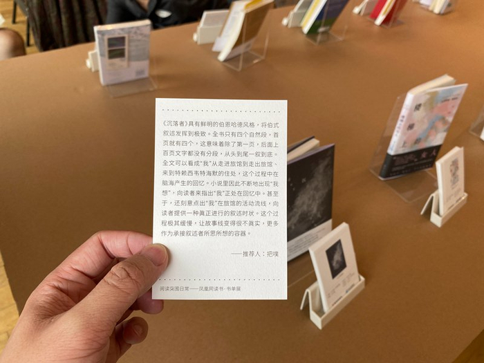 凤凰网读书在2024独立书店阅读节的展览现场设置了“阅读突围日常——凤凰网读书·书单展”,把今年1~3月的推荐书单带到了现场。1月荐书12本、2月荐书10本、3月荐书11本,各设置一张展桌,现场配有样书和精心设计的推荐语书签卡。书展现场,有读者席地而坐读起了新书。4月29日,凤凰网读书发布了11本书组成的4月推荐书单。第一财经2024春季好书《世上为什么要有图书馆》《燕东园左邻右舍》《离岛:于偏僻之地重建生活》也分别入选了凤凰网读书1~4月的推荐书单。