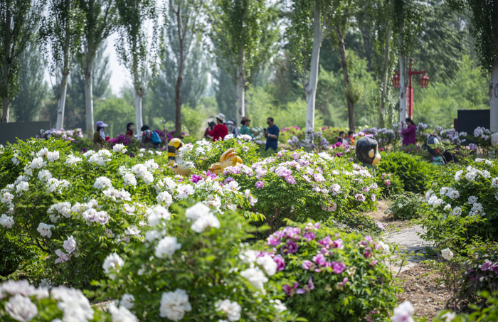 漫步国色牡丹园,仿佛置身于一片无垠的花海之中。市民游客在牡丹园中,赏花、游园,或驻足观赏,或拍照留念。中原牡丹、紫斑牡丹、凤丹牡丹……品种多达650余种,100余万株牡丹在这里争奇斗艳,每一朵都如精心雕琢的艺术品,美得让人心醉。