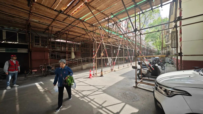 记者走进东城区今年改造面积最大的老旧小区综合整治项目——景泰东里小区,看到施工人员正在忙碌地用木板搭建4米高的护头棚。“这是为了保障施工期间居民通行的安全。”施工单位北京市政七建设工程有限责任公司施工生产经理侯振孝说,一般情况下,室内改造期间单户影响不超过一周。施工单位搭建了两座临时卫生间,加上小区原有的公共卫生间,基本不会影响居民生活。居民接待室地点、联系人电话等内容已在小区内进行公示,居民有任何问题可以随时咨询。