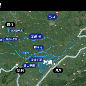 洪湖流域水系复杂,但洪湖水源主要来自四湖总干渠、西干渠、东干渠、田关河、螺山干渠和排涝河。这些河渠沿途接纳两岸洪涝渍水,经洪湖调蓄排入东荆河或长江。