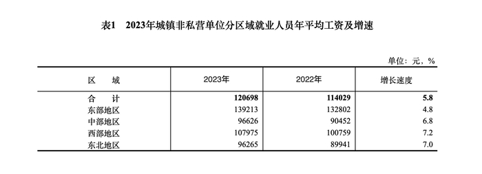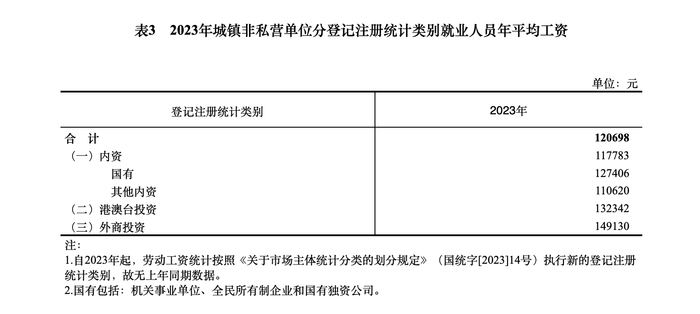 国家统计局:2023年全国城镇非私营单位就业人员年平均工资为120698元