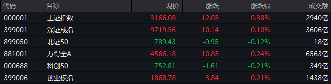 截至午间收盘,沪指涨0.38%,深证成指涨0.1%,创业板指涨0.21%。