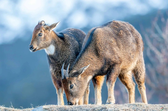 中华斑羚是国家二级重点保护野生动物,属牛科、斑羚属。头顶都长着角,雄性的角比雌性的长,可以通过这个特点分辨性别。食物主要是乔木、灌木、草本植物,偶尔也喜欢把少量的苔藓、地衣等当作零食。